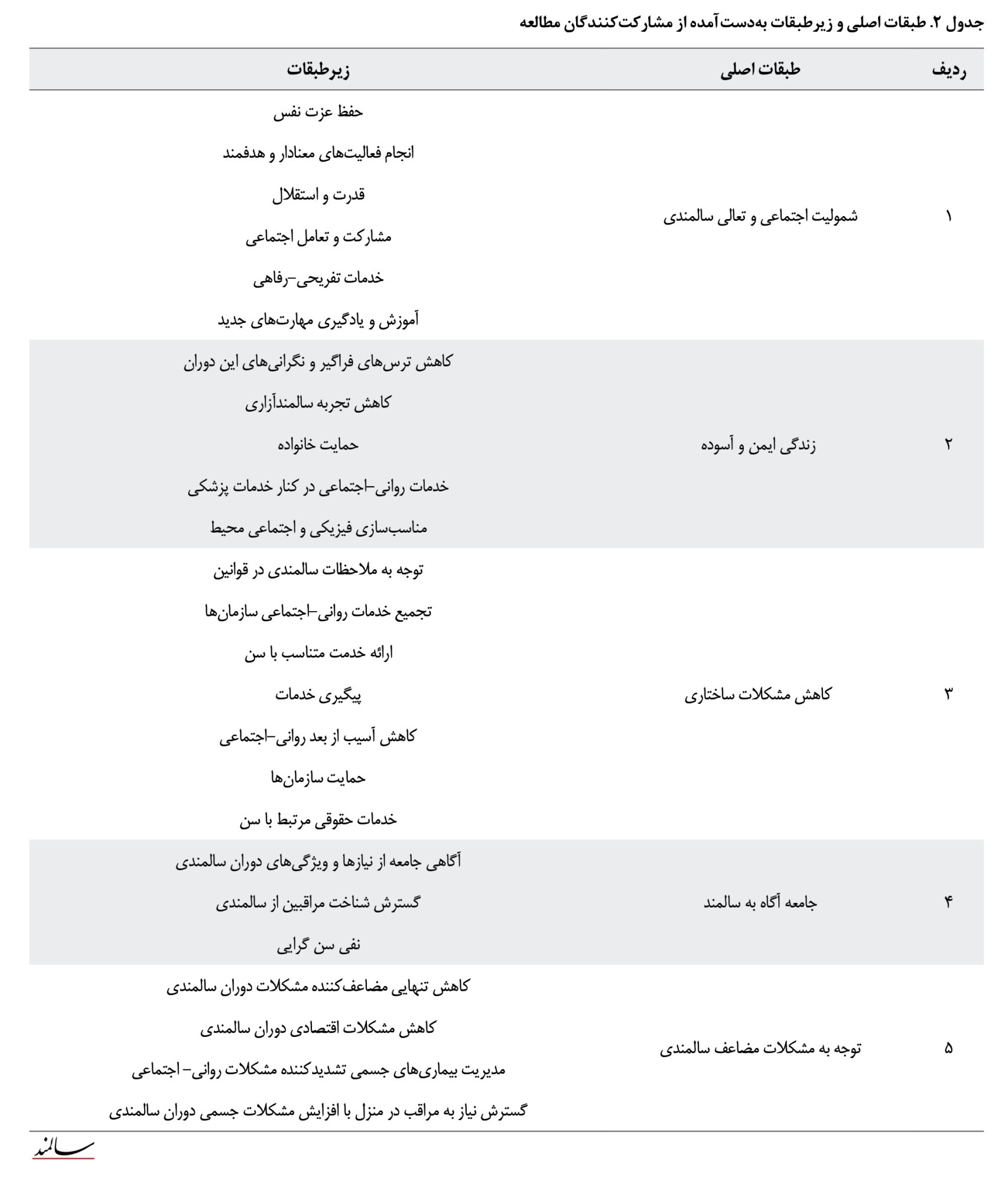 با تحلیل مصاحبهها 5 طبقه اصلی و 25 زیرطبقه استخراج شد (جدول شماره 2).