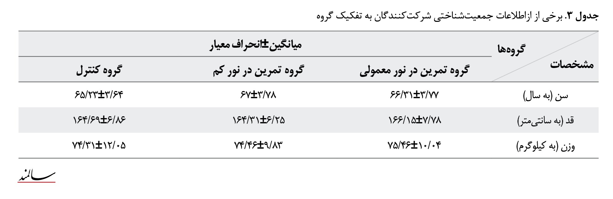 برخی از اطلاعات جمعیتشناختی شرکتکنندگان به تفکیک گروه در جدول شماره 3 ارائه شده است.