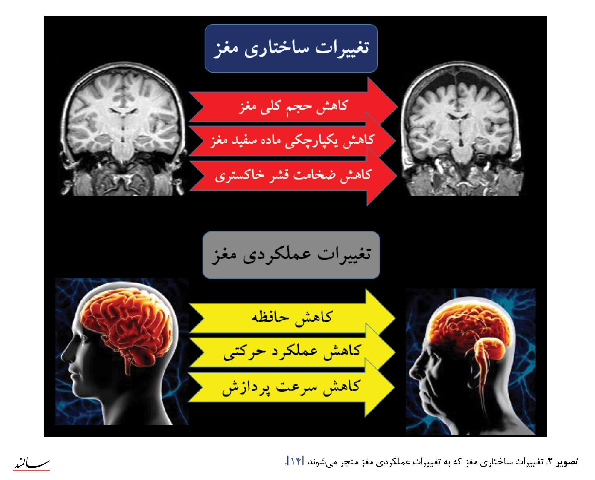 سازمان بهداشت جهانی اخیراًً سن 65 سال را آغاز دوران سالمندی اعلام کرده است که آمار و ارقام نیز نشان میدهند جمعیت بالای 65 سال روزبهروز در حال افزایش میباشند که در این زمینه سازمان ملل متحد، رشد جمعیت سالمند را تا سال 2050 در حدود 2 میلیارد نفر تخمین زده است [2]. بااینحال، سالمندی یک عامل بسیار تأثیرگذار بر احتمال بروز بیماریهای مزمن ازجمله بیماریهای قلبی-تنفسی، عصبی-عضلانی، متابولیکی و سرطان در نظر گرفته میشود [3]. یکی از مهمترین ارگانهایی که در اثر سالمندی تغییرات فیزیولوژیکی و پاتولوژیکی زیادی را تجربه میکند، سیستم عصبی مرکزی میباشد که اختلالات ایجادشده در عملکرد مغز در اثر سالمندی، گاهاً برگشتناپذیر گزارش شده است [4].