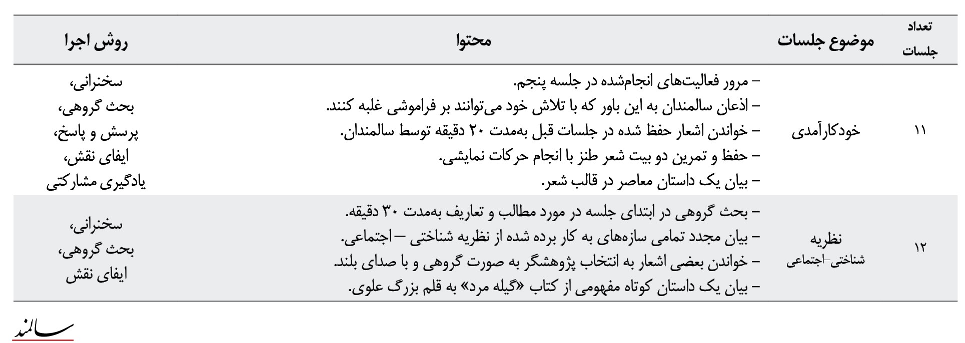 یافتههای این مطالعه با نتایج مطالعه وایت و همکاران که با عنوان تأثیرات SCT بر رفتار فعالیت بدنی در بزرگسالان میانسال و سالمند انجام شده بود و مشخص شد خودکارآمدی فعالیت فیزیکی را بهطور مستقیم و غیرمستقیم از طریق انتظارات پیامد تحت تأثیر قرار میدهد، همسو بود. این موضوع نشان میدهد این متغیرها باید در مداخلات مربوط به تبعیت از رفتارهای ورزشی بهعنوان هدف قرار گیرند [26]. همچنین حیدری و همکاران در مطالعه خود با هدف تعیین ارتباط پیروی از رفتارهای بهداشتی (فعالیت بدنی و تغذیه) و برخی سازههای نظریه شناختی - اجتماعی، نتیجه گرفتند خودکارآمدی بر انتظارات پیامد که همان بهبود وضعیت جسمی میباشد تأثیر گذاشته و باعث تبعیت از رفتار بهداشتی موردنظر میشود. همچنین انتظارات پیامد میتواند بر حمایت اجتماعی نیز تأثیرگذاشته و به تبعیت از رفتار موردنظر قوت بخشد [27]. میانگین نمره سازه ارزشهای پیامد در پژوهش حاضر، در سالمندانی که تحت مداخله قرار گرفتند، نسبت به قبل از مداخله افزایش معنیداری پیدا کرد. بالاتر بودن میانگین نمره در گروه مداخله نسبت به گروه کنترل بعد از مداخله نیز حاکی از آن است که سالمندان تأثیر شعر و داستان بر امید زندگی را دریافتند و بر فواید بهبود شناخت و حافظه ارزش نهادند. این در حالی است که نتایج مطالعات نسبتاً مشابه ازجمله مطالعه قریشی و همکاران نشان میدهد هرچه میزان ارزشهای پیامد و دیگر سازههای نظریه شناختی- اجتماعی در افراد مبتلا به دیابت بیشتر باشد، رفتارهای خودمراقبتی بهتری خواهند داشت و درنتیجه در طراحی و اجرای مداخلات آموزشی برای خودمراقبتی بیماران دیابتی، از نظریه شناختی - اجتماعی میتوان بهعنوان چارچوبی بهره برد و به ارتقای و حفظ سلامت این بیماران کمک کرد [28].