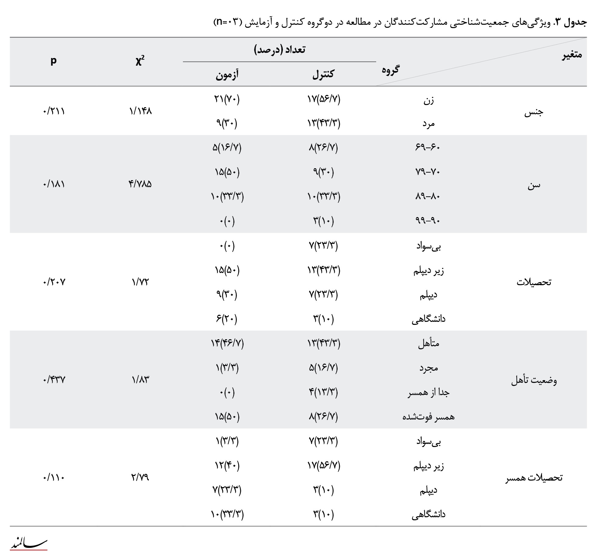 بهطورکلی یافتهها نشان داد میانگین نمره وضعیت شناختی گروه مداخله از 21/93 قبل از مداخله، به 25/20 بعد از مداخله افزایش یافت که اختلاف معنیداری را در گروه آزمایش نشان میدهد (0/01>P). همچنین میانگین نمرات سازههایSCT قبل از مداخله، از 62/76 در گروه آزمایش به 83/73 بعد از مداخله افزایش یافت.