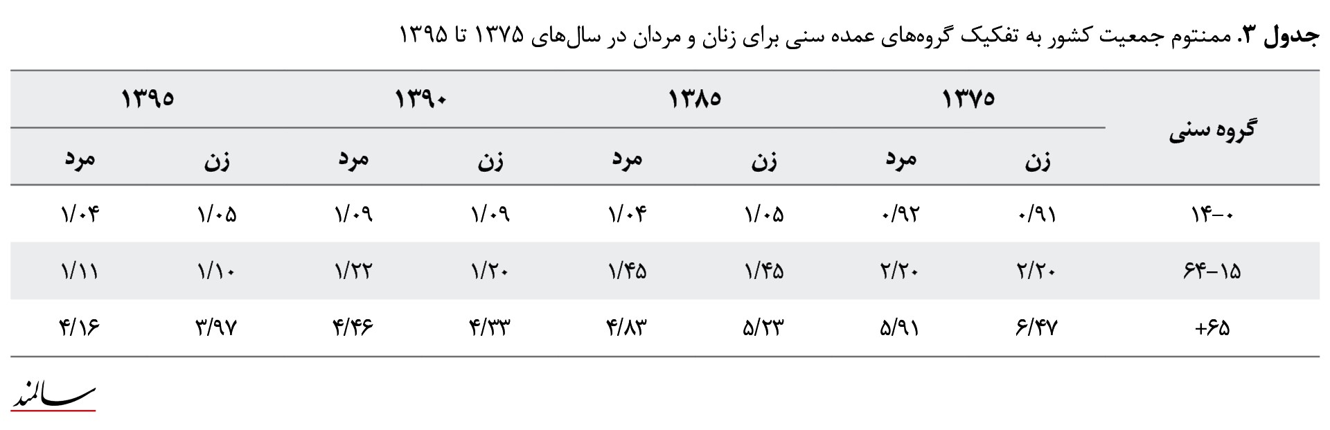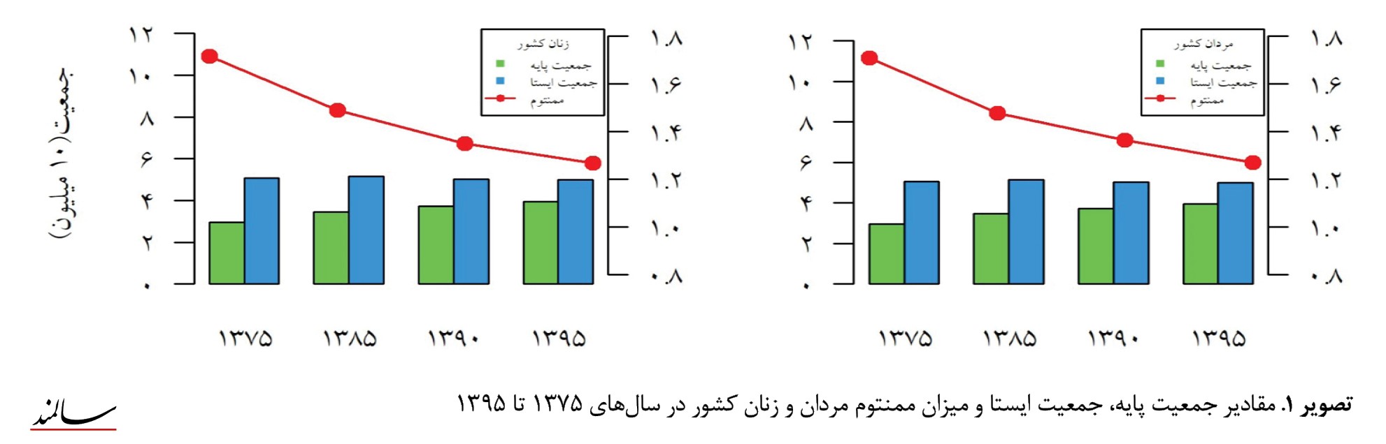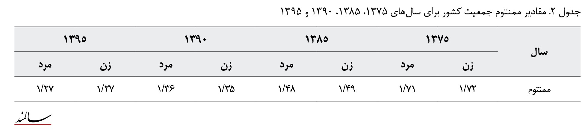 جدول شماره 2 ممنتوم برای زنان و مردان در سال 1375 بهطور مساوی حدود 1/7 به دست آمده است.