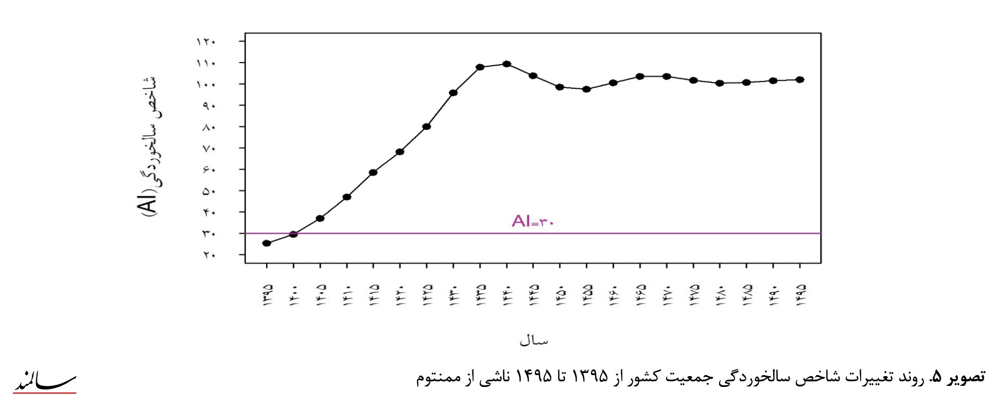 براساس دادههای موجود، روند تغییرات شاخص سالخوردگی صرفاً تحتتأثیر ممنتوم محاسبه و در