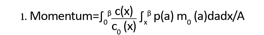 فرمول شماره 2 ممنتوم از نسبت جمعیت ایستای معادل جمعیت پایه (S) بر جمعیت پایه (P) به دست آمد و در واقع ممنتوم از انحراف جمعیت سرشماریشده از حالت ایستای آن به دست آمد.