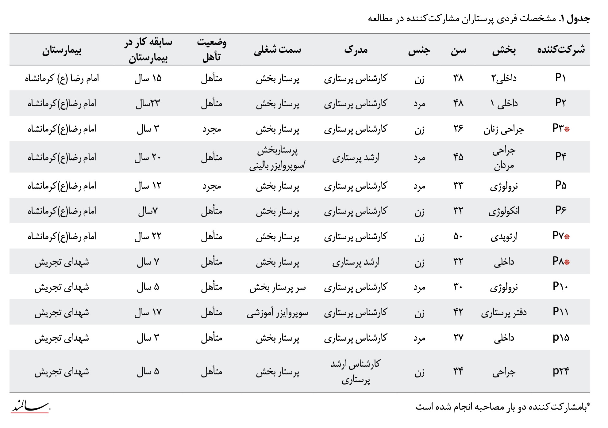 در این مطالعه با 13 پرستار مشارکتکننده مصاحبه به عمل آمد (